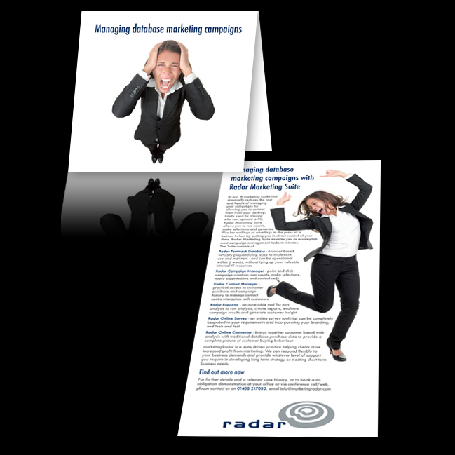 Marketing Radar briefed us to introduce the Radar Marketing Suite through a B2B direct mail campaign targeting small and medium-sized travel and retail companies. The campaign was aimed at marketers and managers. Given the challenges of selling innovation, a drip-feed strategy that would focus on a very specific problem-solving approach was adopted.